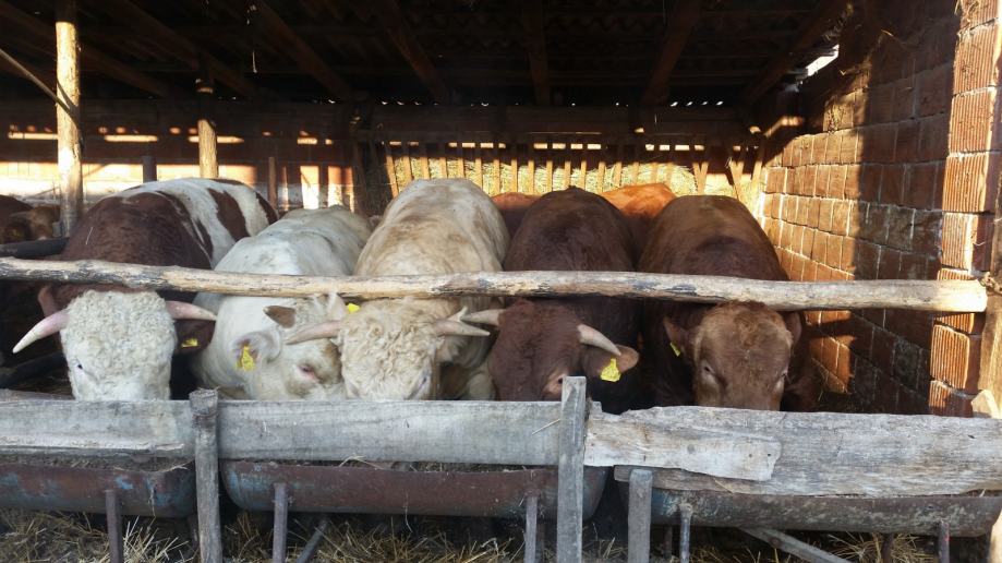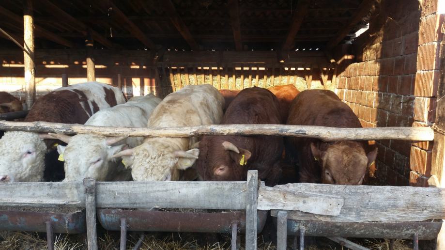 Prodajem mlade bikove do 15 mjeseci starosti limuzin,belgijsko plavo i šarole.Teški oko 600kg ,16kn kila