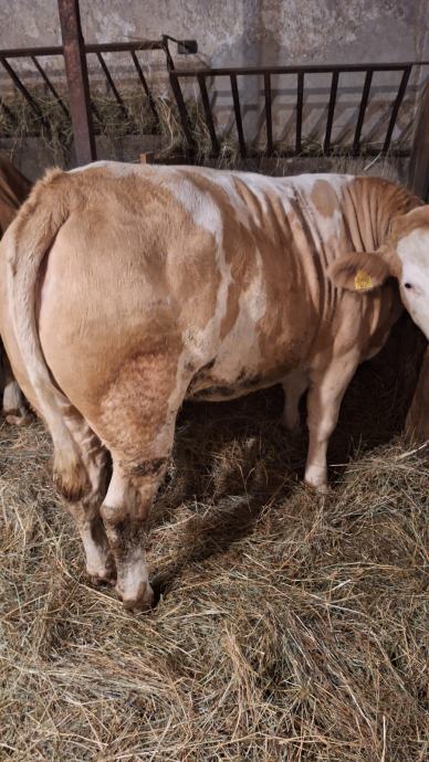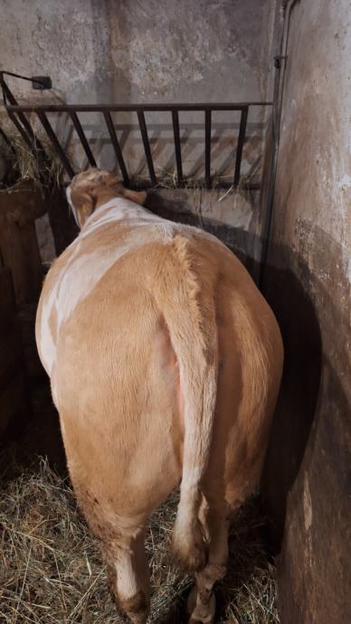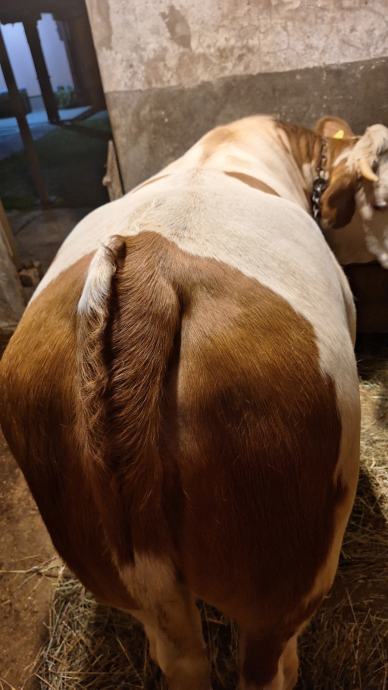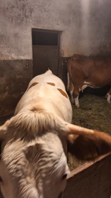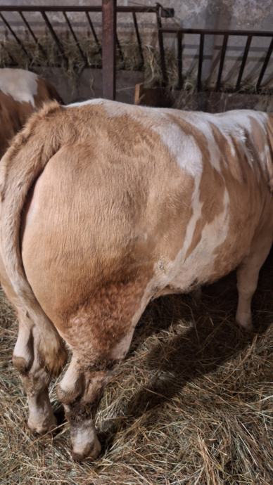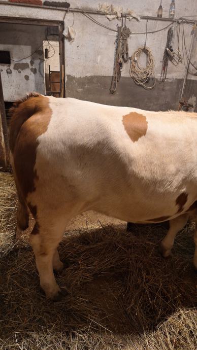 Junica simentalske pasmine, bređa 6 mjeseci, odlične genetike, težine oko 650 kg, prodaje se.