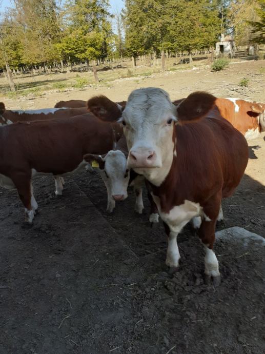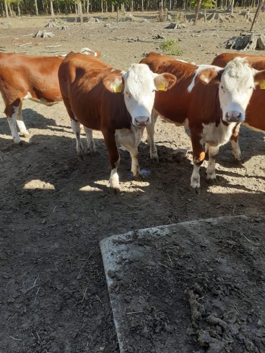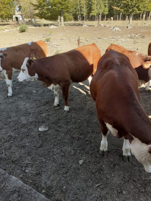 Prodajem 10 komada junica za rasplod, križanac s mesnom pasminom (majka Simentalac - bik Hereford) starosti 13 mjeseci iz uzgoja sustav krava-tele na otvorenom, težine 350-400 kg, (nisu oplođene).
