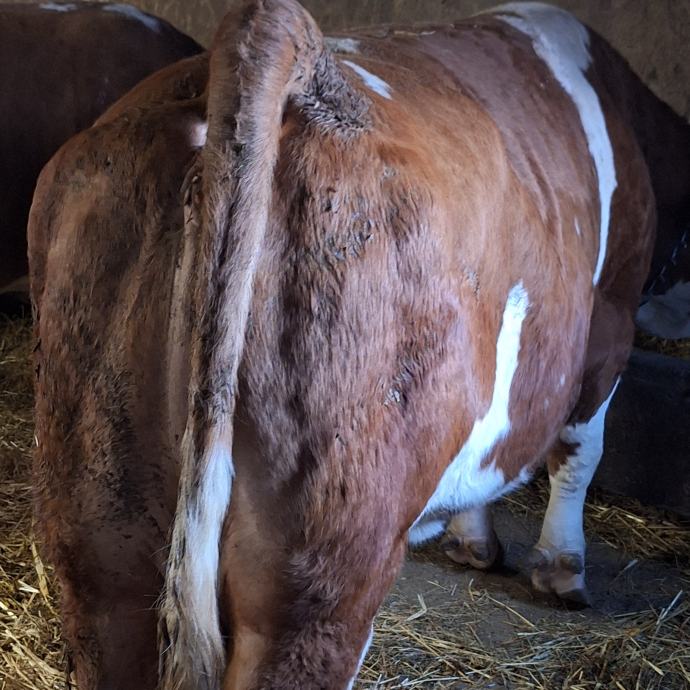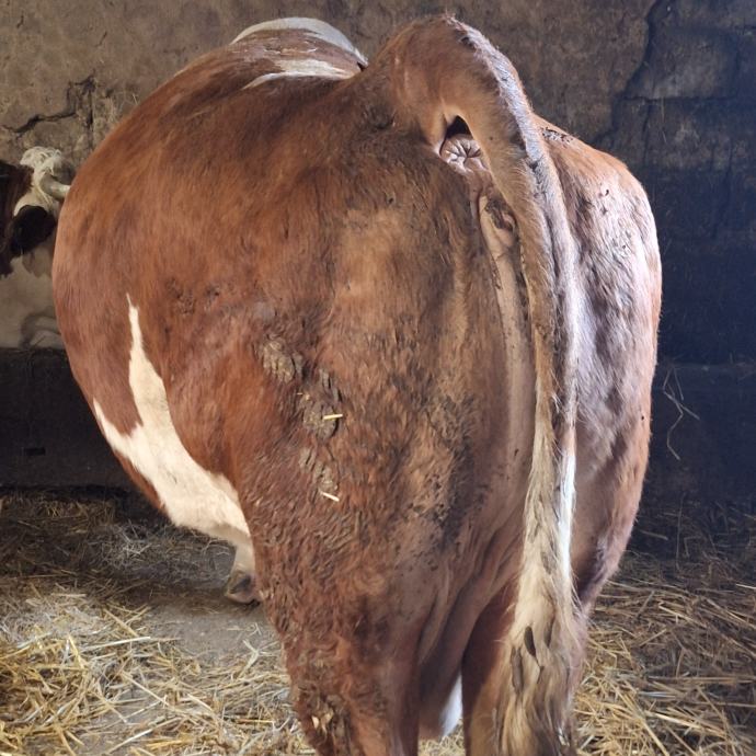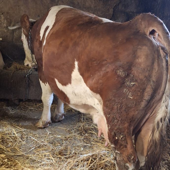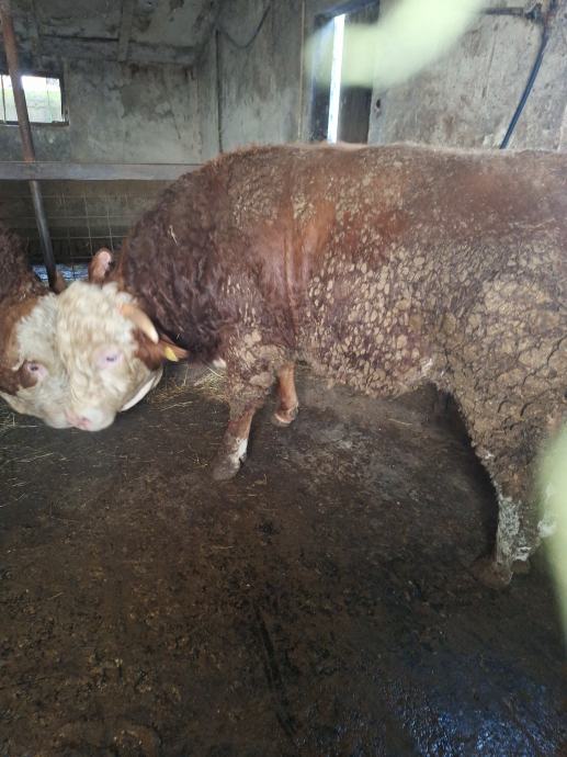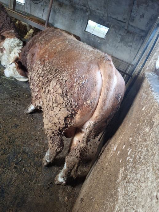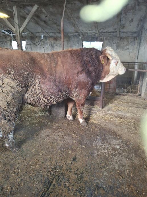 Prodajem bika simentalske pasmine starog 18 mjeseci. Cijena 4.10 eu za kg i kravu simentalku za obradu oko 700 kg težine po 3 eu za kg. Inf. 099 2543098