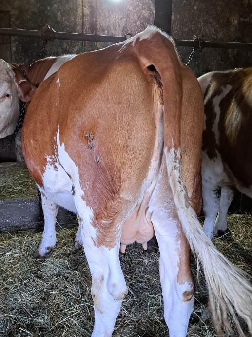 Prodajem prvotelku simentalske pasmine stara 2 godine oko 700 kg.
