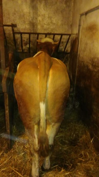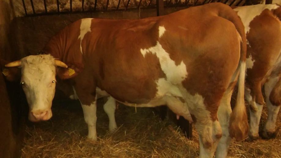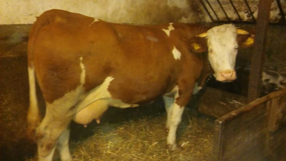Krava simentalske pasmine za domačinstvo, stara 3 godine, bređa 8 mjeseci, težine 750 kilograma.