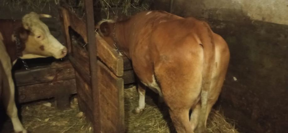 Krave simentalske pasmine za domaćinstvo, stare od 3 do 5 godina, težine oko 650 do 700 kg, bređe od 3 do 7 mjeseci, prodaju se.