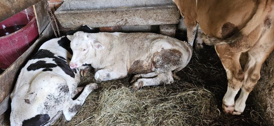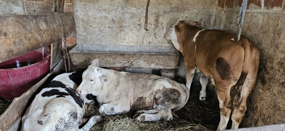 Prodajem prvotelku 28.2.2022 se rodila ima tele starosti 3mj krava je križana crni holstain i šarole teletu je tata simentalac tele ima cca 170kg slike su stare nekolko tjedana