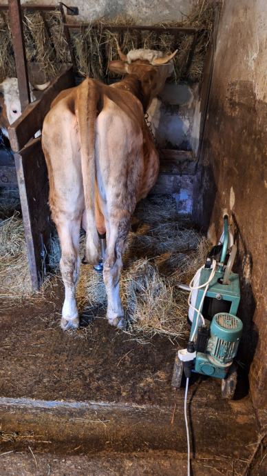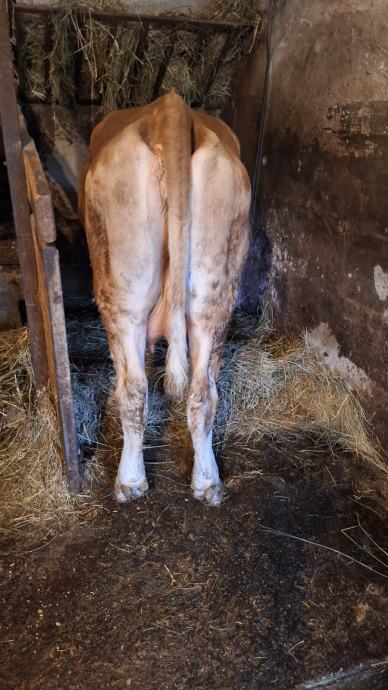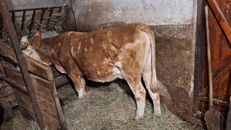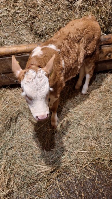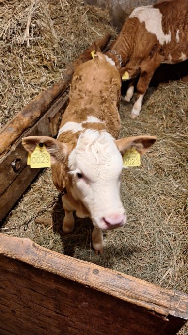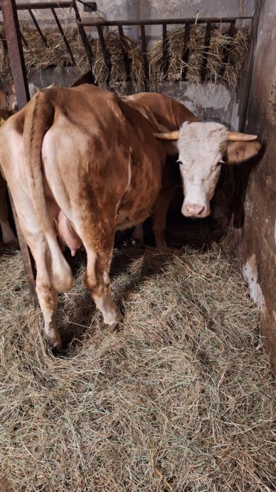Mlada krava simentalske pasmine za domaćinstvo, stara 3 godine, drugi put oteljena, sa ženskim teletom starim mjesec dana. Prodaje se, okolica Samobora.