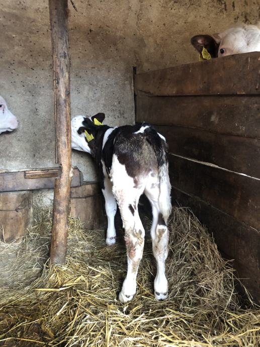 Prodaje se muško tele mjesec dana staro. Križanac simentalca i belgijskog plavog. Cijena 450€.