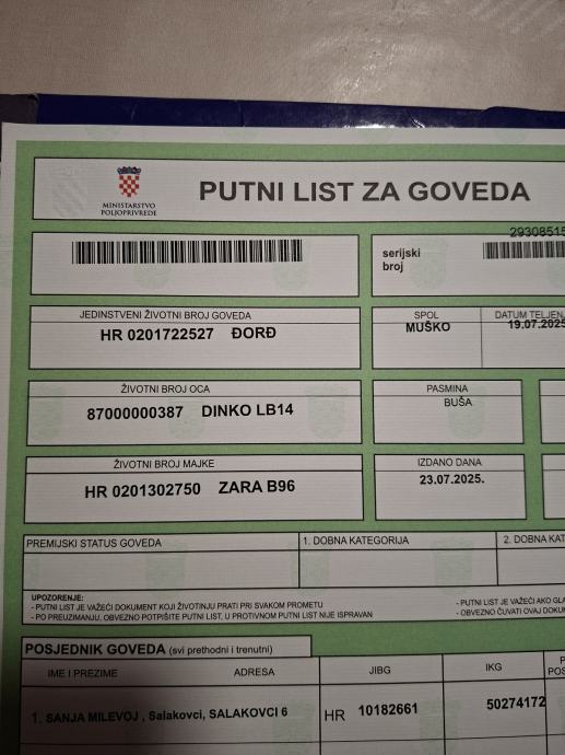 Prodajem muško tele buše ,oteljen 19.07.2025. Ili mjenjam za drugog druge linije.