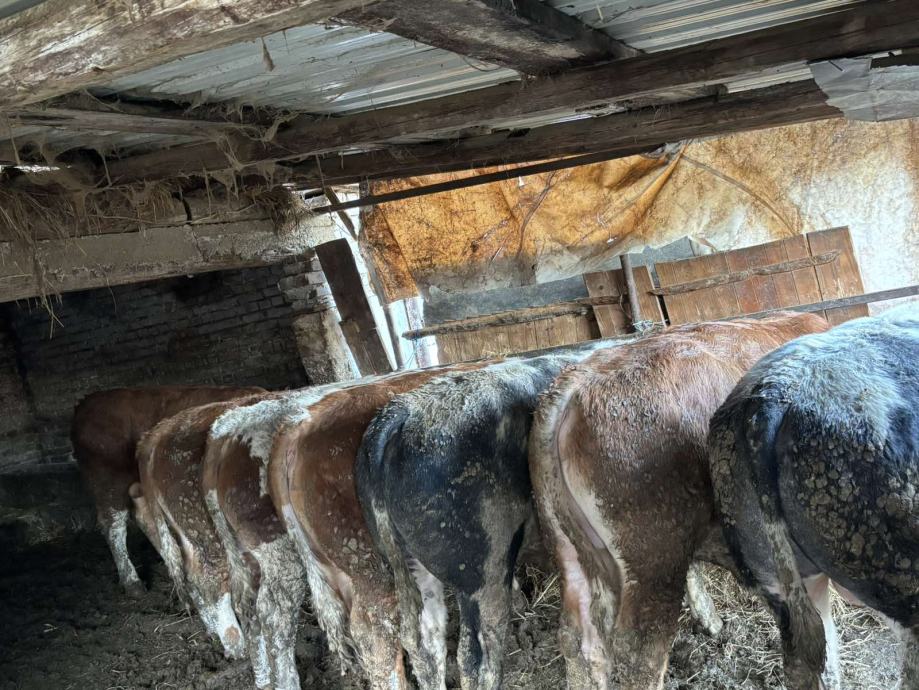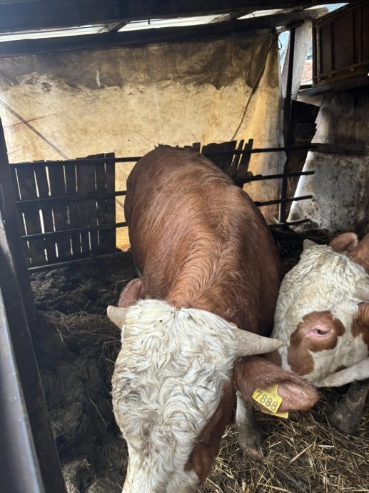 Prodajem sedam bikova oko 500 kg. Pet simentalaca i dva belgijsko plava. Slobodan tov. Cijena 4 e/kg.