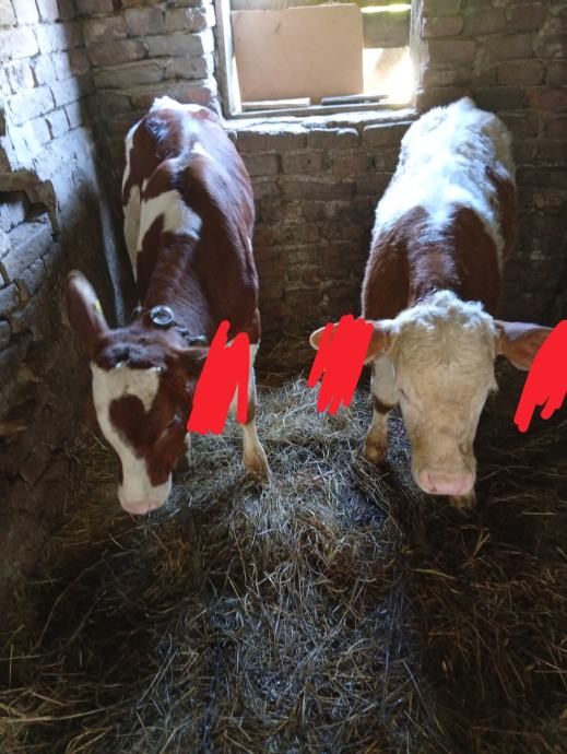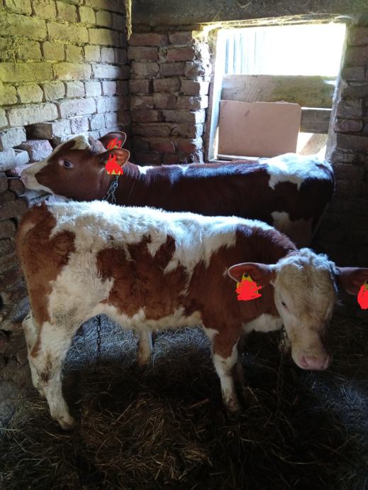 Prodajem dva teleta muska starosti 3 i 3 i pol mjeseca, jedan je cisti simentalac drugi je križanac pogodni su za daljnji tov vec polako jedu ali piju mlijeko jos nalaze se u okolici Bjelovara cijena je po dogovoru na broj telefona 092 220 6105