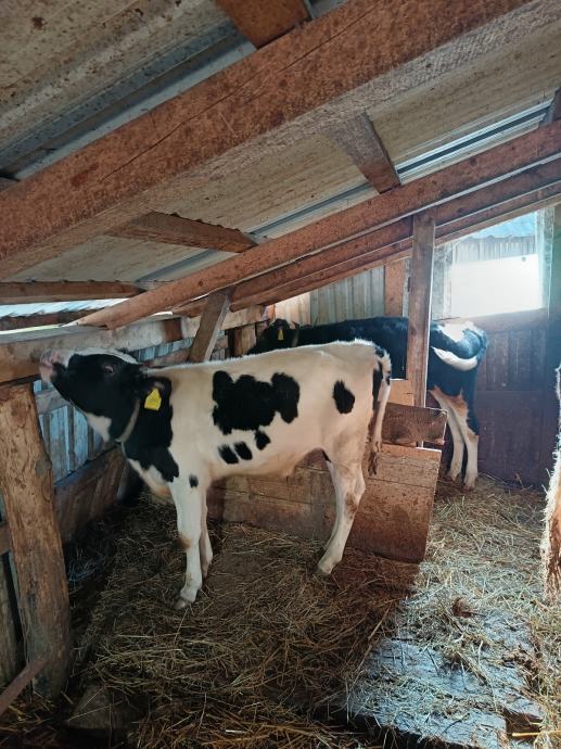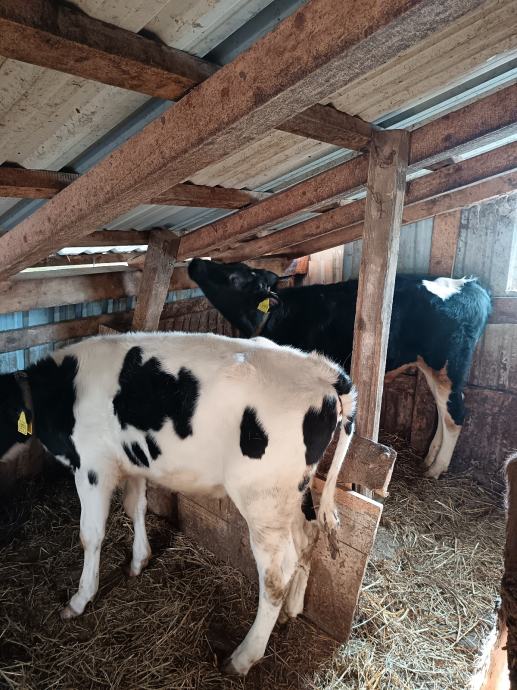Dva telca još doje krave, 5 mj, jedu svu hranu odlično, debeli, za klanje ili tov, muški, na vagu 5,5 eura tko kupi obadva, pojedinačno cjena druga, može i zamjena obadva za kravu simentalac mlađu visoko bređu ili kravu sa manjim teletom za domaćinstvo, prepis obavezan i uredan a tako i za kravu tražim, molim samo ozbiljne pozive tko zna šta treba i radi, ostali zaobiđite oglas koga ne zanima, prijevoz uz dogovor na licu mjesta, Krnjak 098 962 4225!!