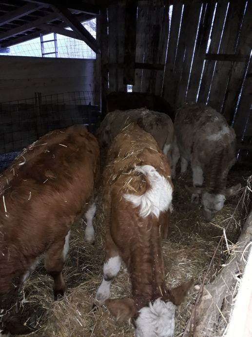 Prodajem pet komada zenskih telaca,tezine oko 200kg.Telci su cisti simentalci,eko uzgoj