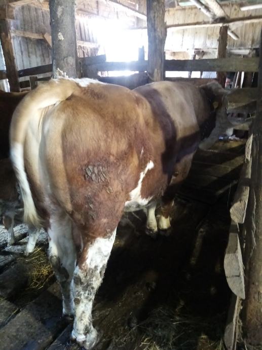Bik simentalac čisti,5 god, oko 900 kg, za rasplod, tov, obradu, meni nebitno, bik je debeli ali može još se utoviti za klanje, papiri uredni prepis obavezan, nije licencirani, trenutno na vezu u štali, bio je i na ispaši prošlih godina , samo je puštan na krave koje se tjeraju i daje odlične telce i krave se same tele bez pomoći, cjena 3500eura, molim samo ozbiljne pozive, ostalo dogovor Krnjak 0,9,8,9,6,2,4,2,2,5!!!!