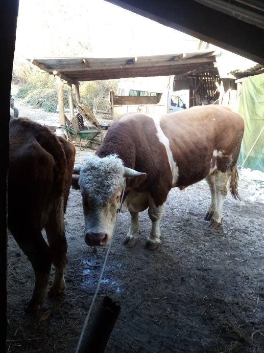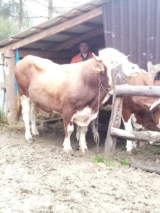 Bik oko 900 kg težine za rasplod, tov,obradu, bik je vrhunske građe,čisti simentalac mesna i mliječne genetike, odlične telce daje, nije licencirani, cjena 3500 eura, zamjena me ne zanimaju ,koga zanima neka zove, prepis obavezan i uredan, Krnjak 098 962 4225 Krnjak!!