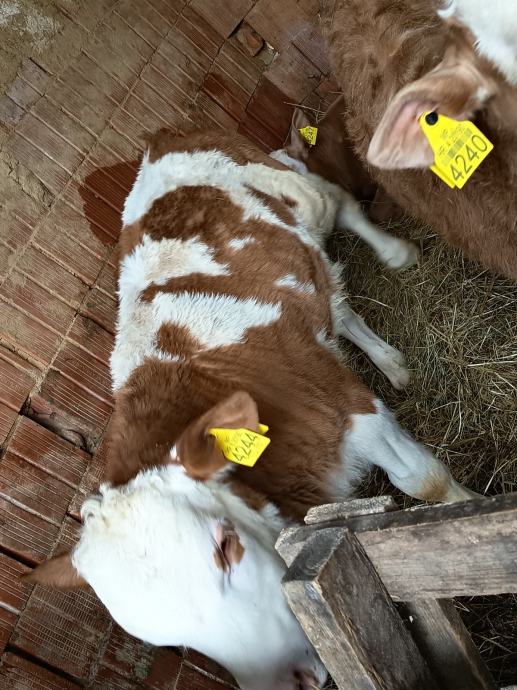 Prodaju se 2 muška teleta starosti 3 do 4 mjeseca simentalci. Cijepljeni protiv parazita jedu dobro spremni za daljnji tov