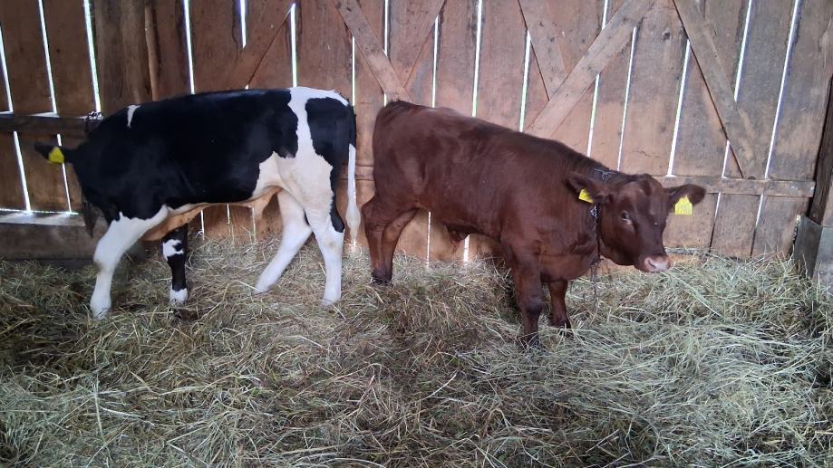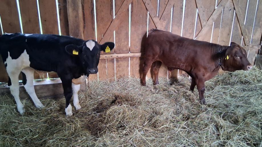 Prodajem 2 muška teleta starosti 3 mjeseca hranjeni isključivo mljekom. Cijena 6 eur/kg.