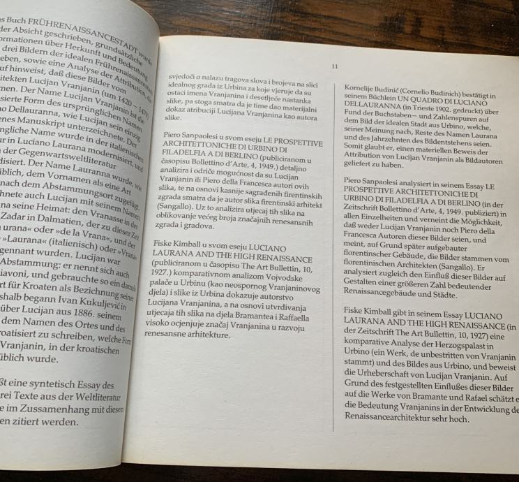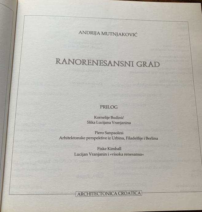 Knjiga "Ranorenesansni grad" informativni je prikaz triju slika idealnog grada, nastalih u Urbinu oko 1470., čiji je autor Lucijan Vranjanin, talijanski arhitekt hrvatskog podrijetla. Autor knjige tumači nastanak i značenje triju slika koje su izvršile snažan utjecaj na novovjekovno poimanje i sliku grada te o mjestu i ulozi samog Vranjanina u povijesti arhitekture.