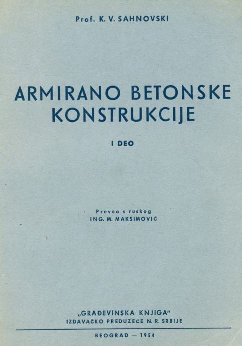 ARMIRANO BETONSKE KONSTRUKCIJE I deo, `Građevinska knjiga`, Beograd 1954. godine, format 24 cm