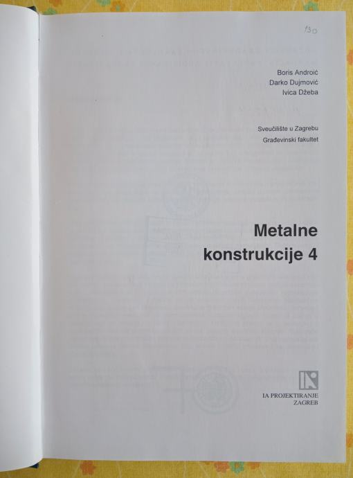 METALNE KONSTRUKCIJE 4, Posebna poglavlja (Boris Androić, Darko Dujmović, Ivica Džeba), IA Projektiranje Zagreb, 2003., str. 416+XIV, tvrdi uvez, 20,00 € / 150,69 kn, prodajem.