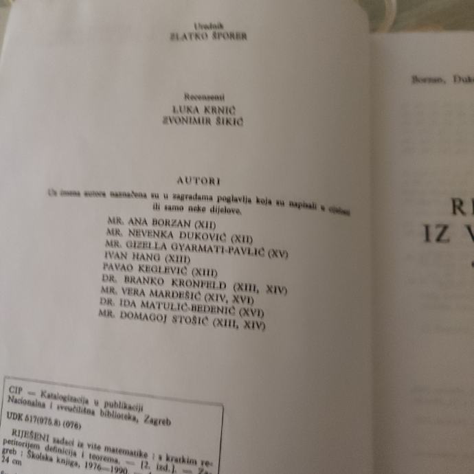 Odlična pomoć u savladavanju matematičkih zadataka, oko 400 stranica, grupa autora.