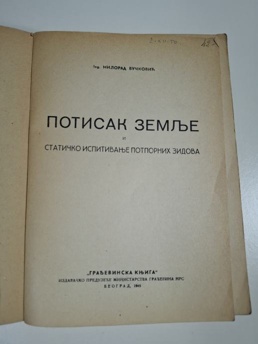 Vučković, Milorad - Potisak zemlje i statičko ispitivanje potpornih...