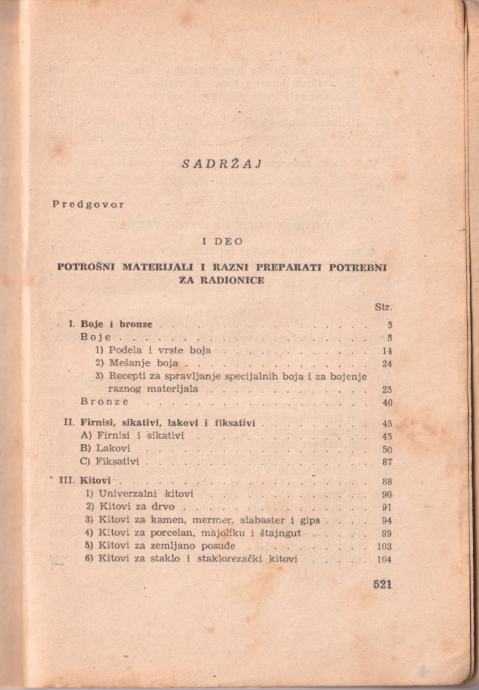 ZBIRKA TEHNIČKIH PREPARATA ZA RAZNE ZANATE II MATERIJALE 1950