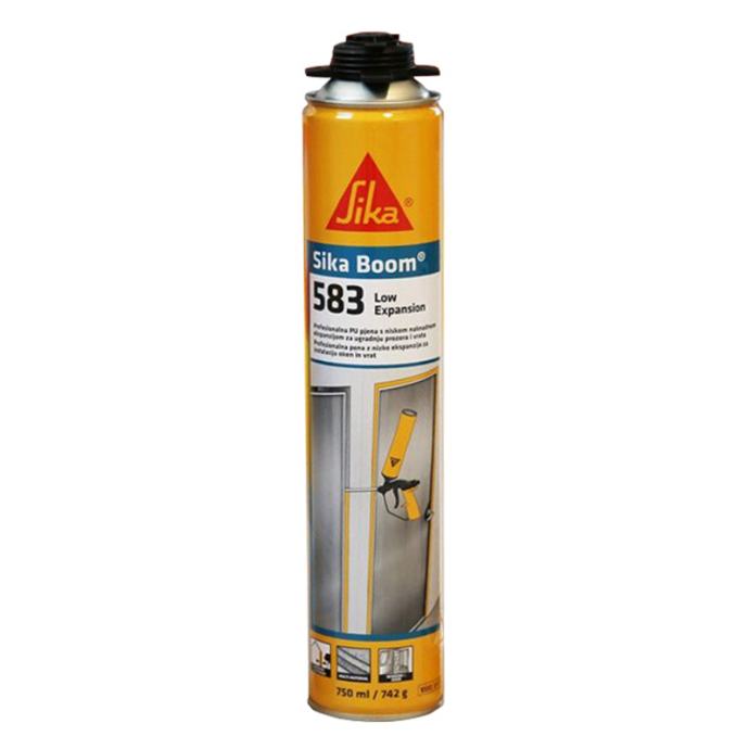 Sika Boom®-583 Low Expansion je poliuretanska, jednokomponentna, samoekspandirajuća pištoljska pjena s niskom naknadnom ekspanzijom i slabim pritiskom očvršćavanja. S obzirom na svoja svojstva Sika Boom®-583 Low Expansion je prikladan za primjene osjetljive na pritisak poput zapunjavanja spojeva oko prozora i okvira vrata.
