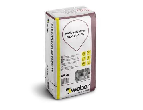 Suhi tip građevinskog ljepila za termo fasadne sustave bijele boje koji se koristi za lijepljenje izolacijskih obloga u sustavima za izolaciju. Izolirajte kuću s weber.therm specijal W ljepilom izrađenim od kvalitetnih punila. Posebna punila ljepilu daju dodatnu snagu i kvalitetu, zbog kojeg postavljanje ploča i gletanje postaje jednostavnije.