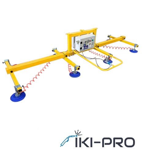 Teleskopska konstrukcija omogućuje poprečnu i uzdužnu prilagodbu prema dimenzijama tereta. Opremljen je s 8 vakuumskih čašica, pri čemu po dvije jedinice imaju vlastiti ventil za zatvaranje zraka, što omogućuje fleksibilnost pri rukovanju različitim formatima.