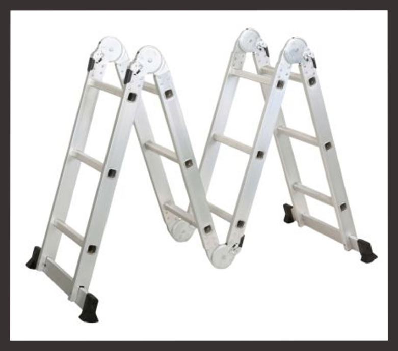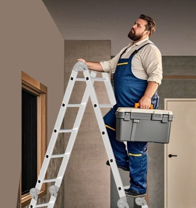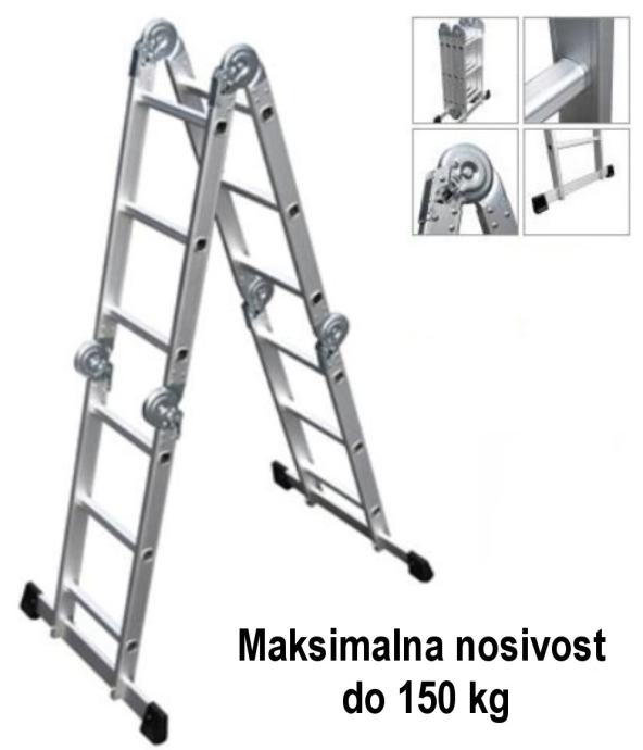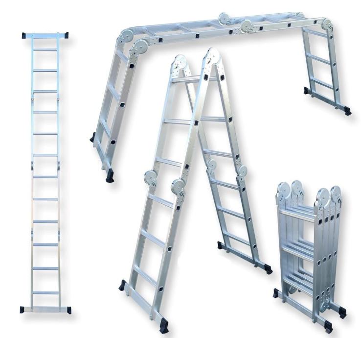 ✿ Ove aluminijske ljestve mogu se rasklopiti na više načina, maksimalno do 3,60 metara, pogodne za rad na visini, a mogu se formirati kao skela, nove, samo isprobane.