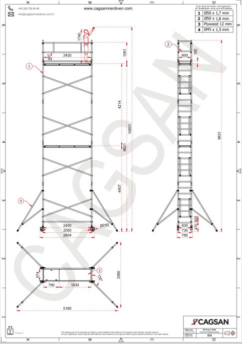 Aluminijska skela 1060 cm, pokretna - CAGSAN ProTUBE S10