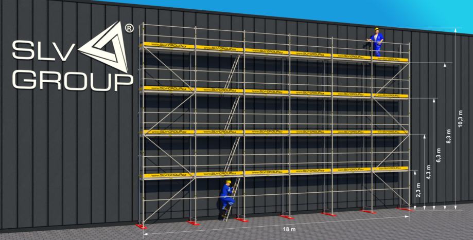 Građevinska fasadna skela 185 m2 novo typ Plettac drveni podova. NOVO skela tip Plletac dostupna odmah.