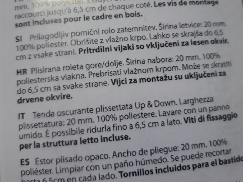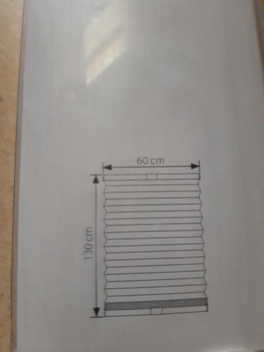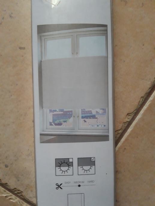 Plisirana roleta za prozor. Imam samo jednu, kupili u Njemačkoj i jedna od više njih ostala. Komad je bila cijena 39 eura. Sjenilo za zaštitu od sunca. Širina nabora 20 mm, 100% poliesterska vlakna, održava se vlažnom krpom, montira se na alu, pvc i drvenu stolariju. Može se suziti sa svake strane do 6,5 cm, tako da je za otvor od 60 do 47 cm, visina maksimalno do 130 cm. Aluminijske vodilice. Može se postaviti uz staklo u okvir ili na okvir prozora. Može se montirati i na krovni prozor. Štiti od sunca koliko si podesite, daje privatnost, kada se montira može ići i prema dolje i prema gore, s više ili manje propuštanja svjetlosti. Cijena 15 eura. Mob 091 444 4281