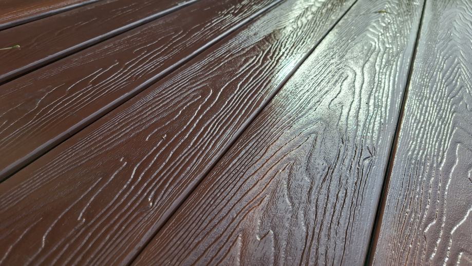 Strana s tekturom drveta dodatno je obrađena s ciljem isticanja 3D strukture. Ovaj decking daje poseban taktilni osjećaj za bosu nogu, primjerice za prostore oko bazena i terase.
