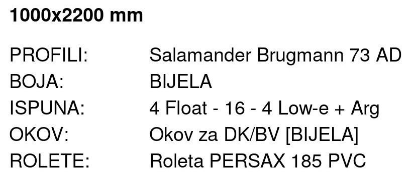 DIMENZIJA BALKONSKIH VRATA: 100x220 cm (širina x visina)