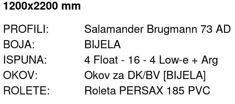 DIMENZIJA BALKONSKIH VRATA: 120x220 cm (širina x visina)