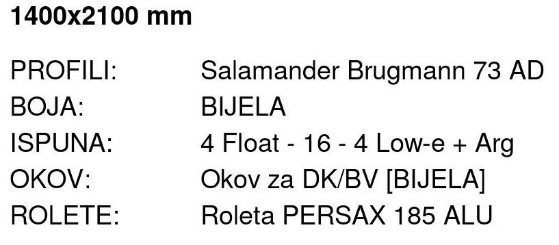 DIMENZIJA BALKONSKIH VRATA: 140x210 cm (širina x visina)