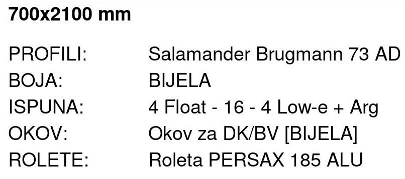 DIMENZIJA BALKONSKIH VRATA: 70x210 cm (širina x visina)
