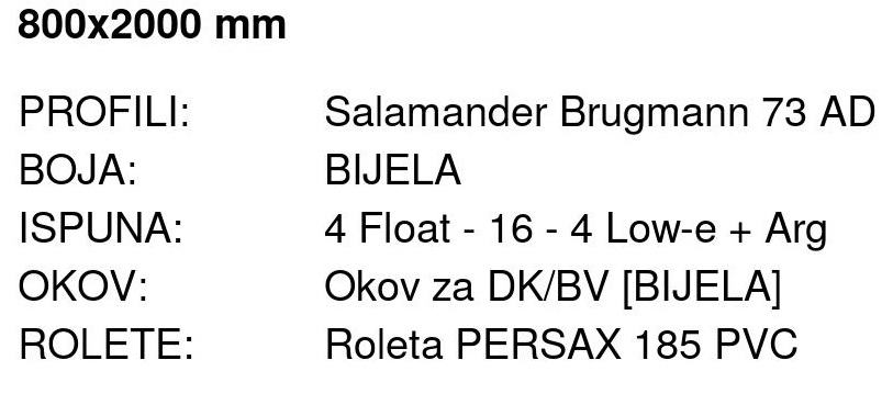 DIMENZIJA BALKONSKIH VRATA: 80x200 cm (širina x visina)