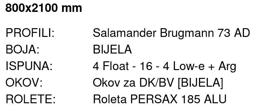 DIMENZIJA BALKONSKIH VRATA: 80x210 cm (širina x visina)