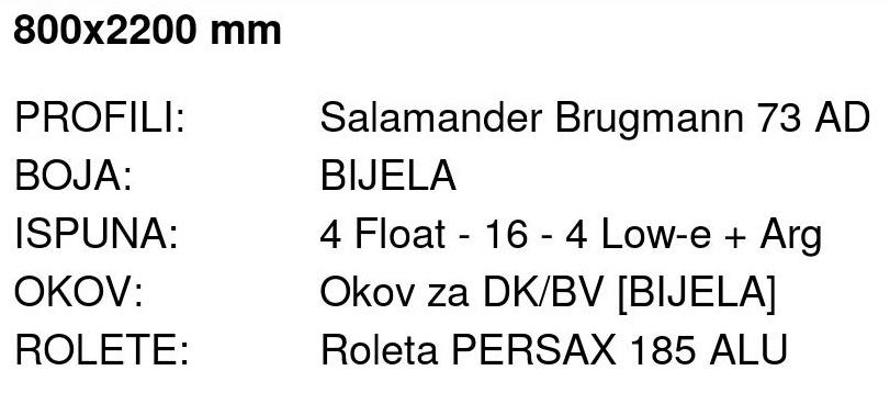 DIMENZIJA BALKONSKIH VRATA: 80x220 cm (širina x visina)