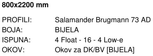 DIMENZIJA BALKONSKIH VRATA: 80x220 cm (širina x visina)