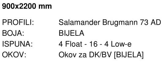 DIMENZIJA BALKONSKIH VRATA: 90x220 cm (širina x visina)