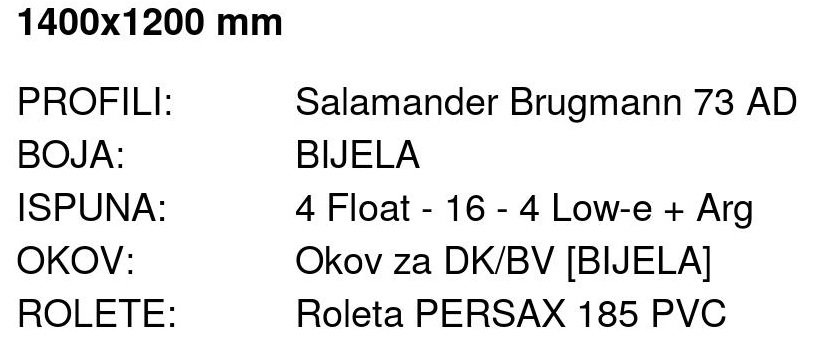 DIMENZIJA PROZORA: 140x120 cm (širina x visina)