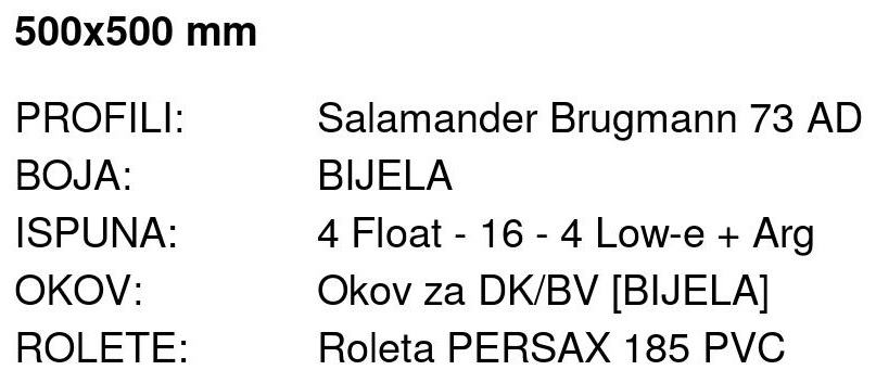 DIMENZIJA PROZORA: 50x50 cm (širina x visina)