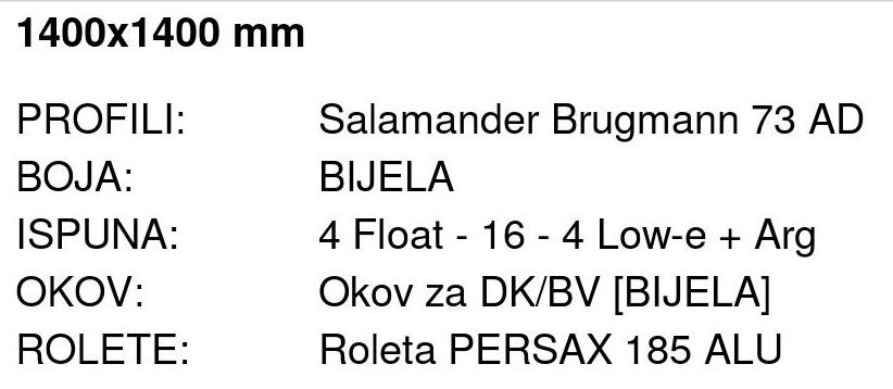 DIMENZIJA PROZORA: 140x140 cm (širina x visina)