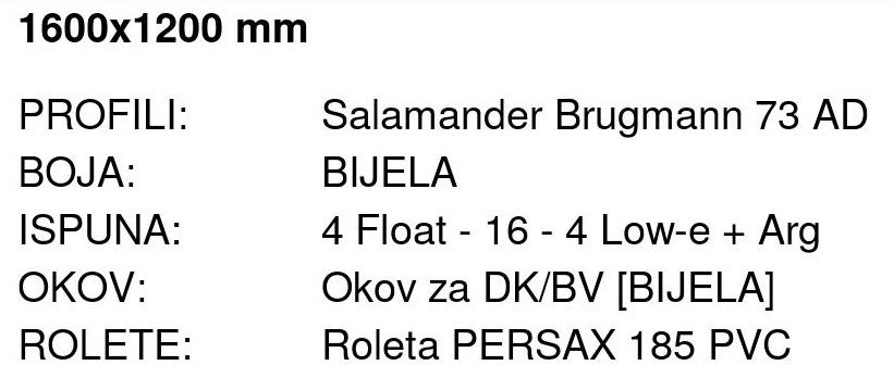 DIMENZIJA PROZORA: 160x120 cm (širina x visina)