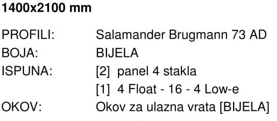DIMENZIJA ULAZNIH VRATA: 140x210 cm (širina x visina)