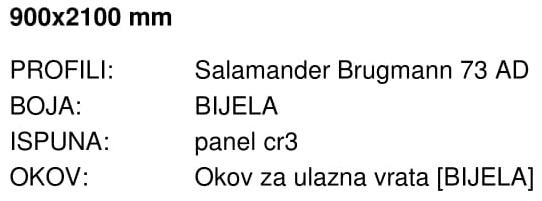 DIMENZIJA ULAZNIH VRATA: 90x210 cm (širina x visina)