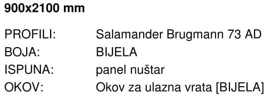 DIMENZIJA ULAZNIH VRATA: 90x210 cm (širina x visina)