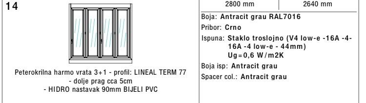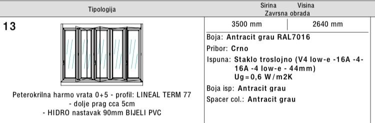 Prodajem dvije aluminijske harmo stijene sa troslojnim staklima. Jedna stijena je široka 350 cm, visine 264 cm sa 5 krila.